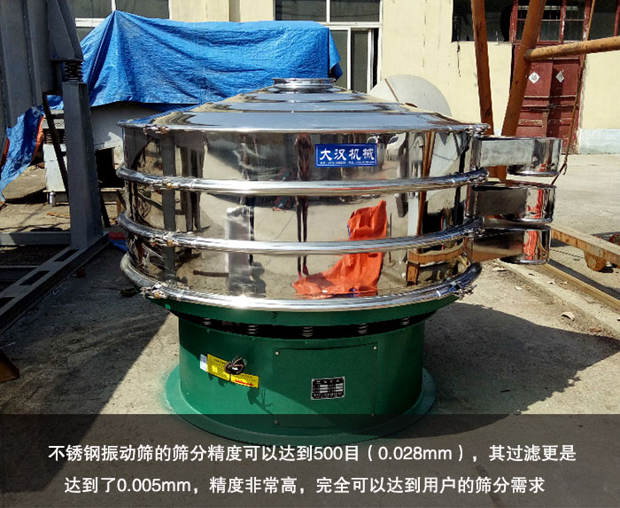 不銹鋼振動篩的篩分精度可以達到500目(0.028mm),其過濾更是達到了0.005mm,精度非常高,完全可以達到用戶的篩分需求。